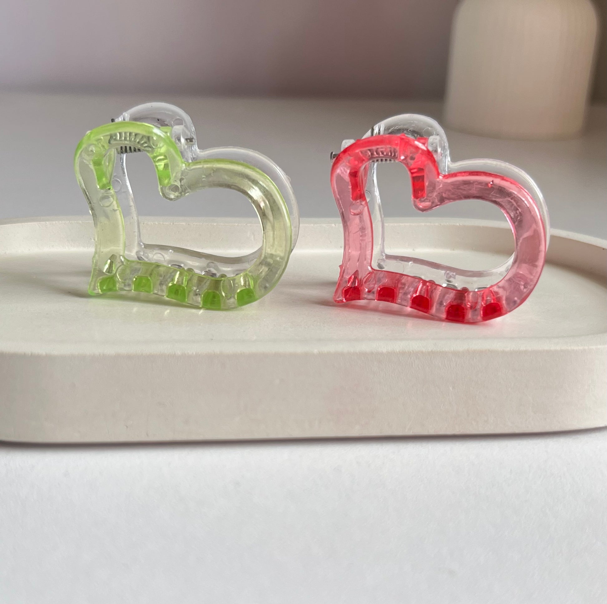 Half & Half Glow Heart Clip ( 2 Pieces) - Green & Red